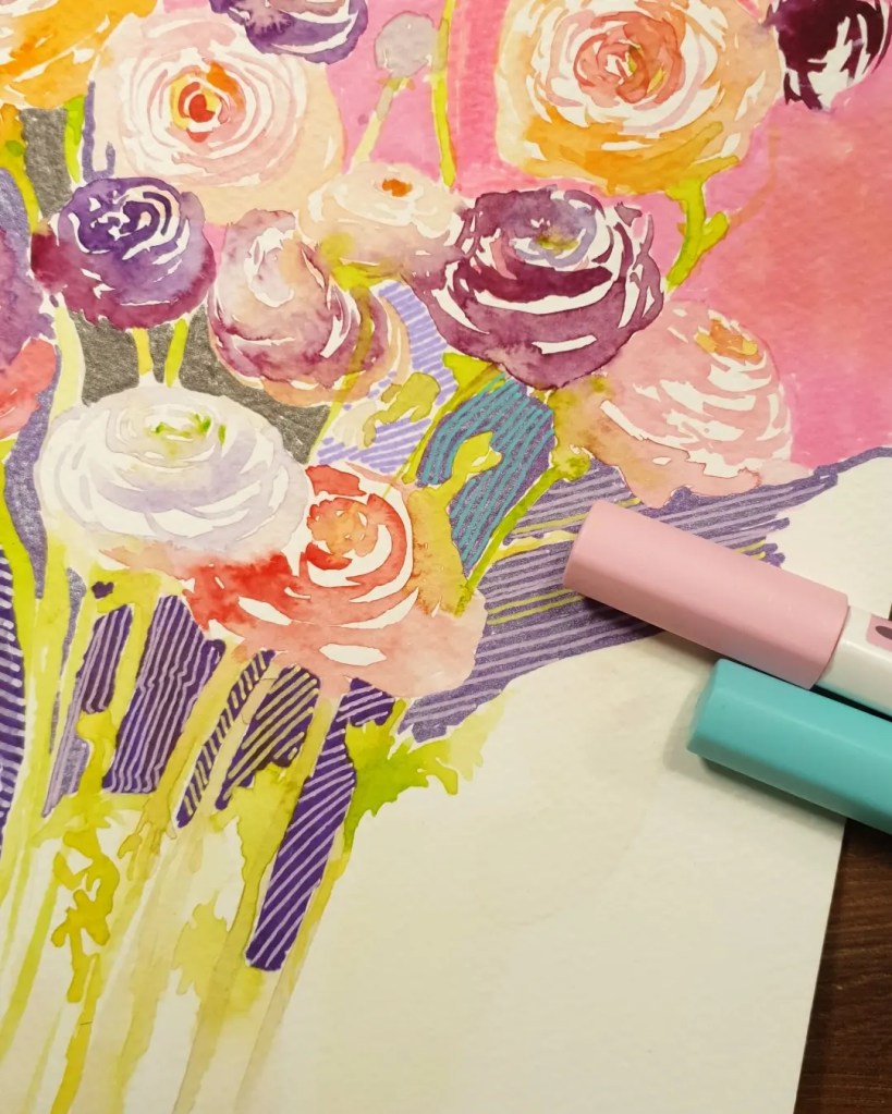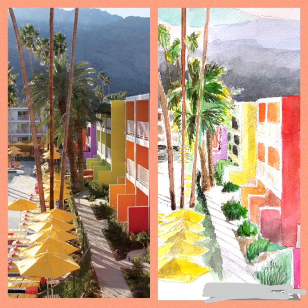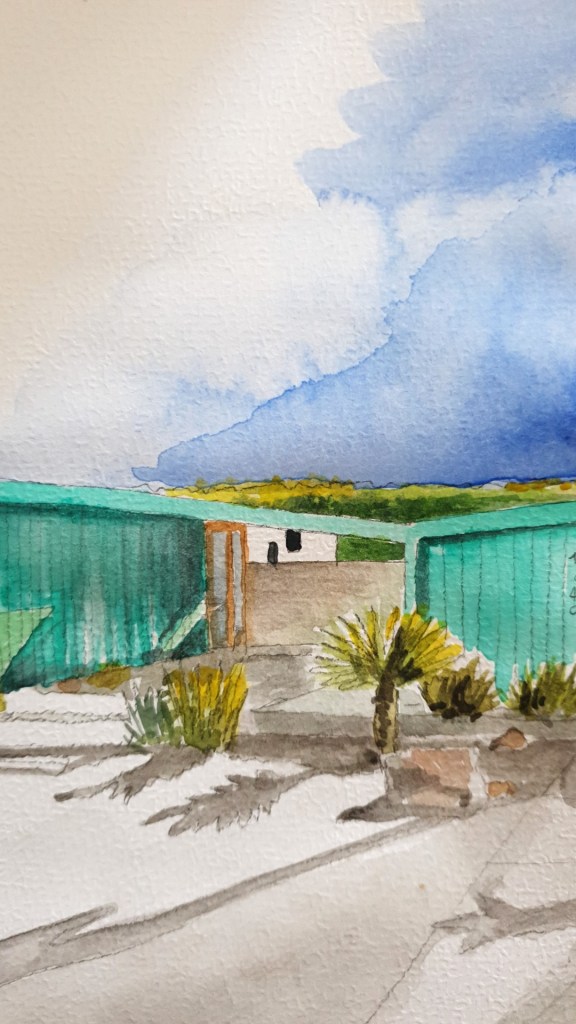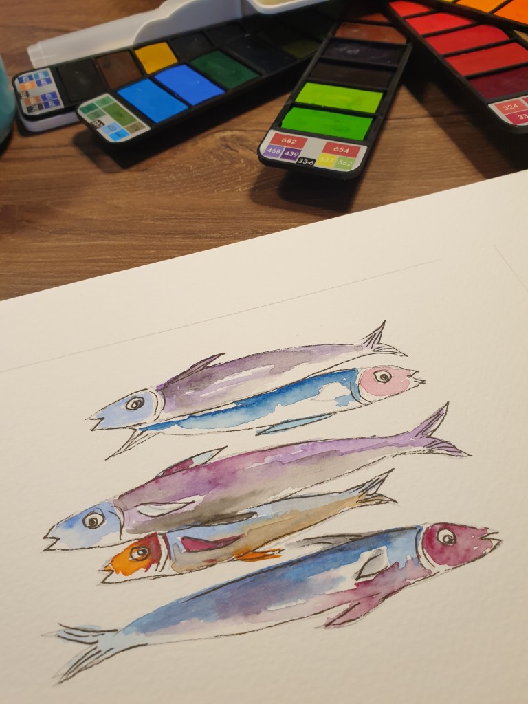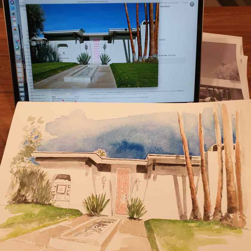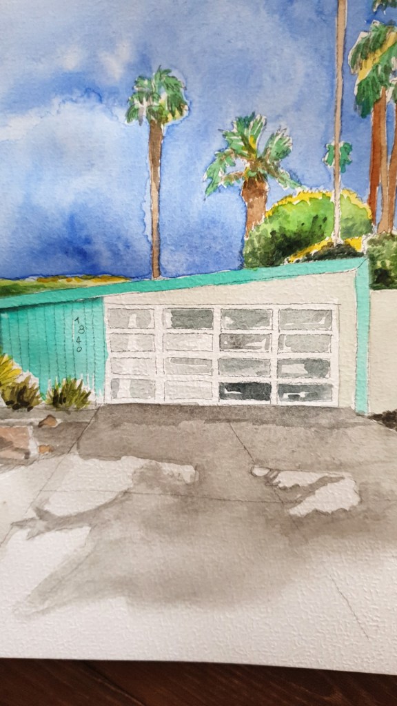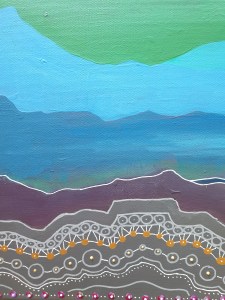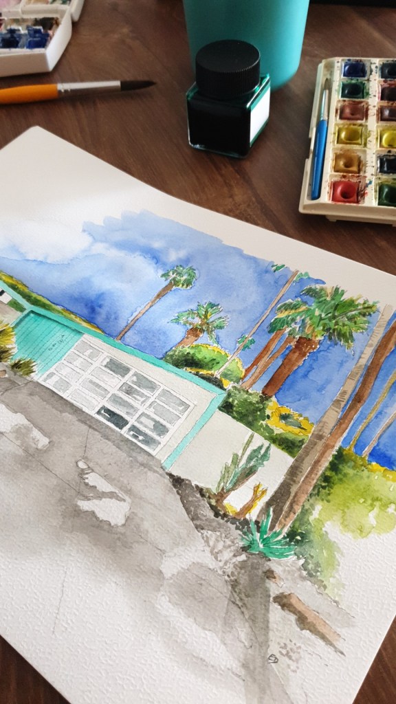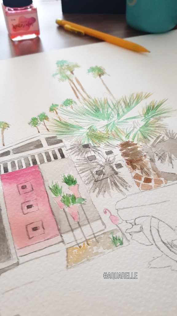 Et puis il y a le van ! Super idée de mon amie que de l’intégrer au tableau pour ces amoureux des voyages et je me suis bien amusée à en peindre un dans un décor exotique.