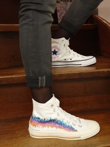 Kathy, qui travaillait « en sous-marin » dans le plus grand secret de la surprise qui se prépare. Elle m’envoyait des photos inspirantes au gré de ses pérégrinations et surtout, elle m’a fait parvenir une liste d’une soixantaine de mots et morceaux de phrases et à moi de les intégrer à l’oeuvre.