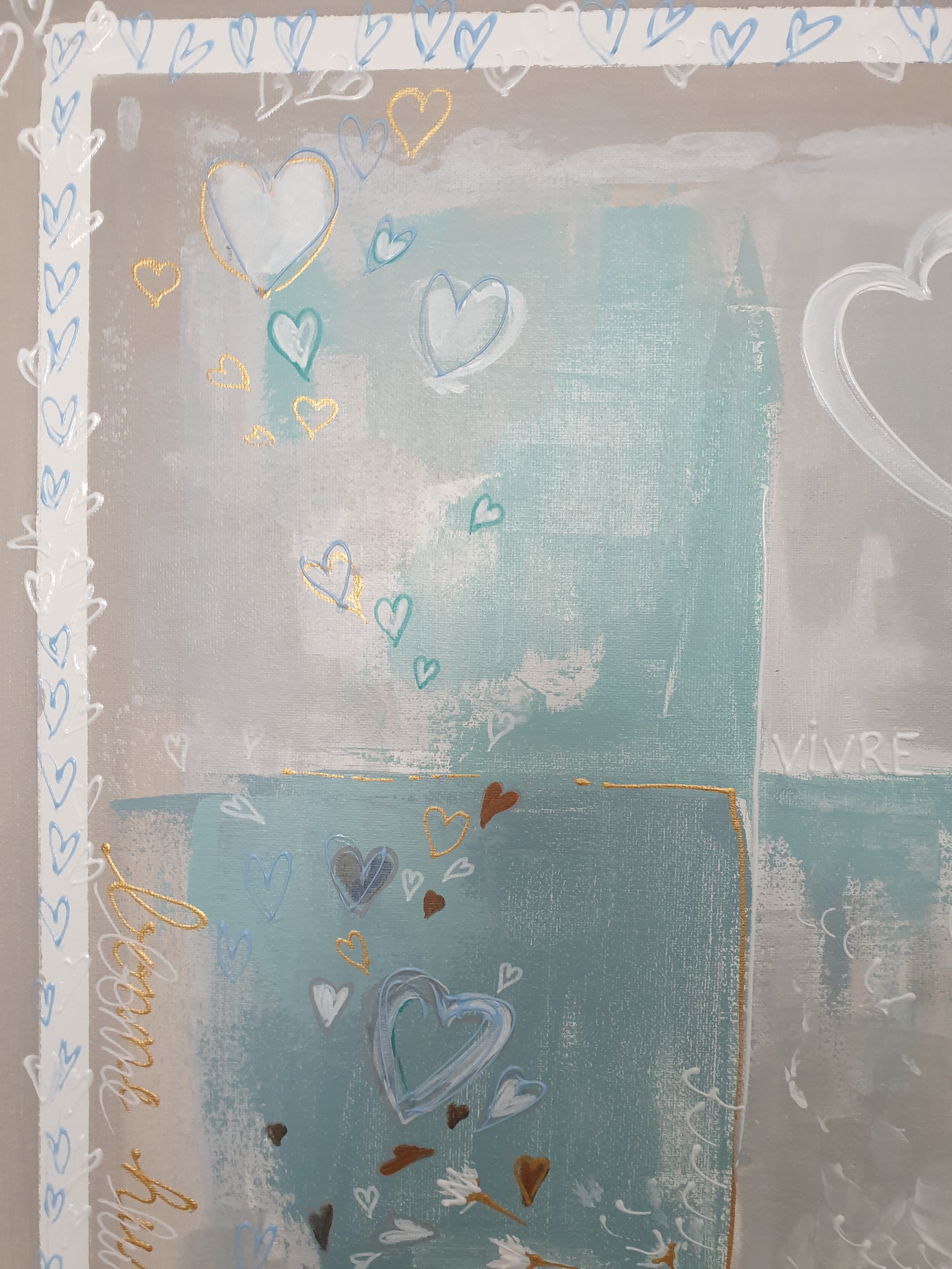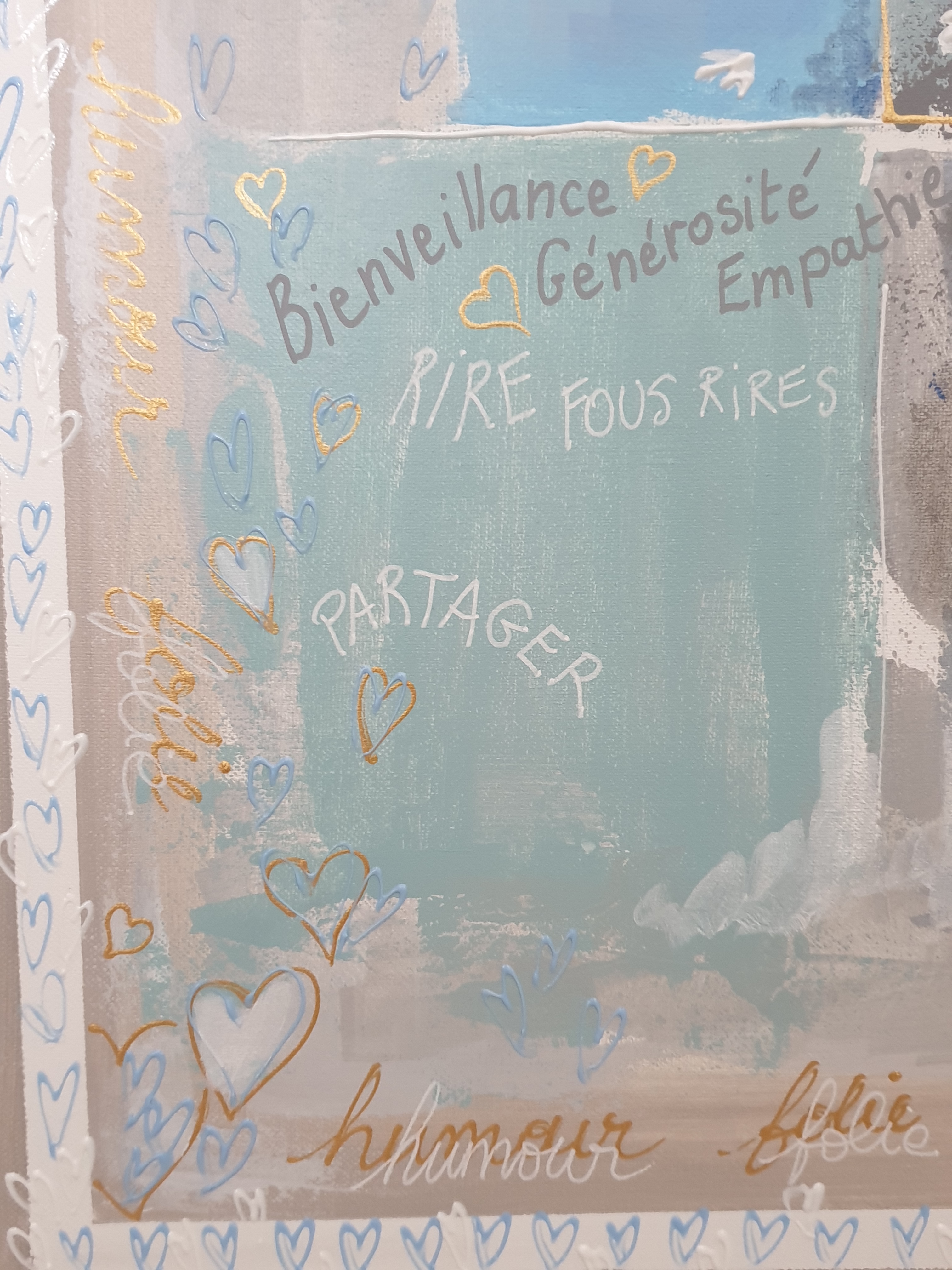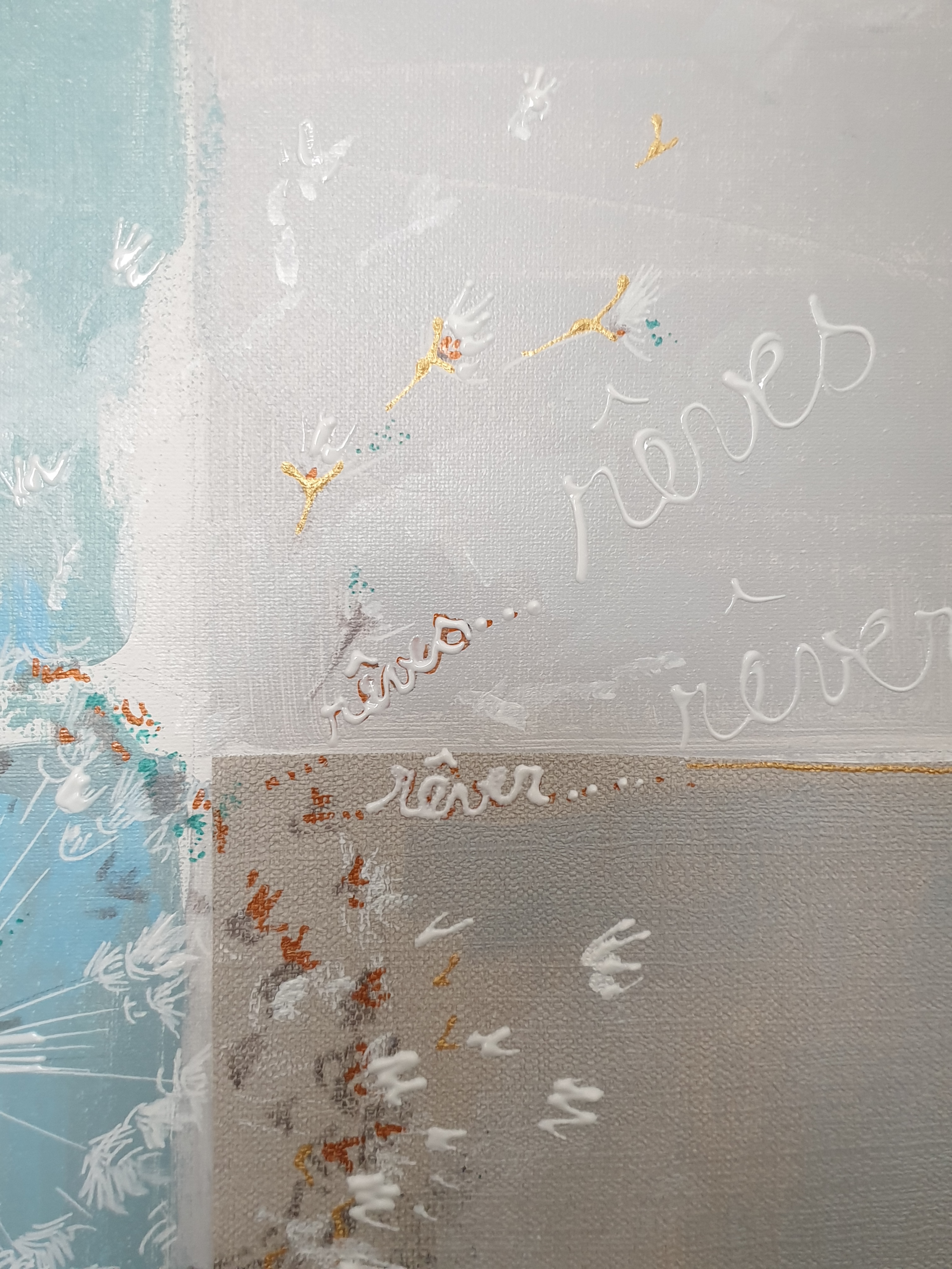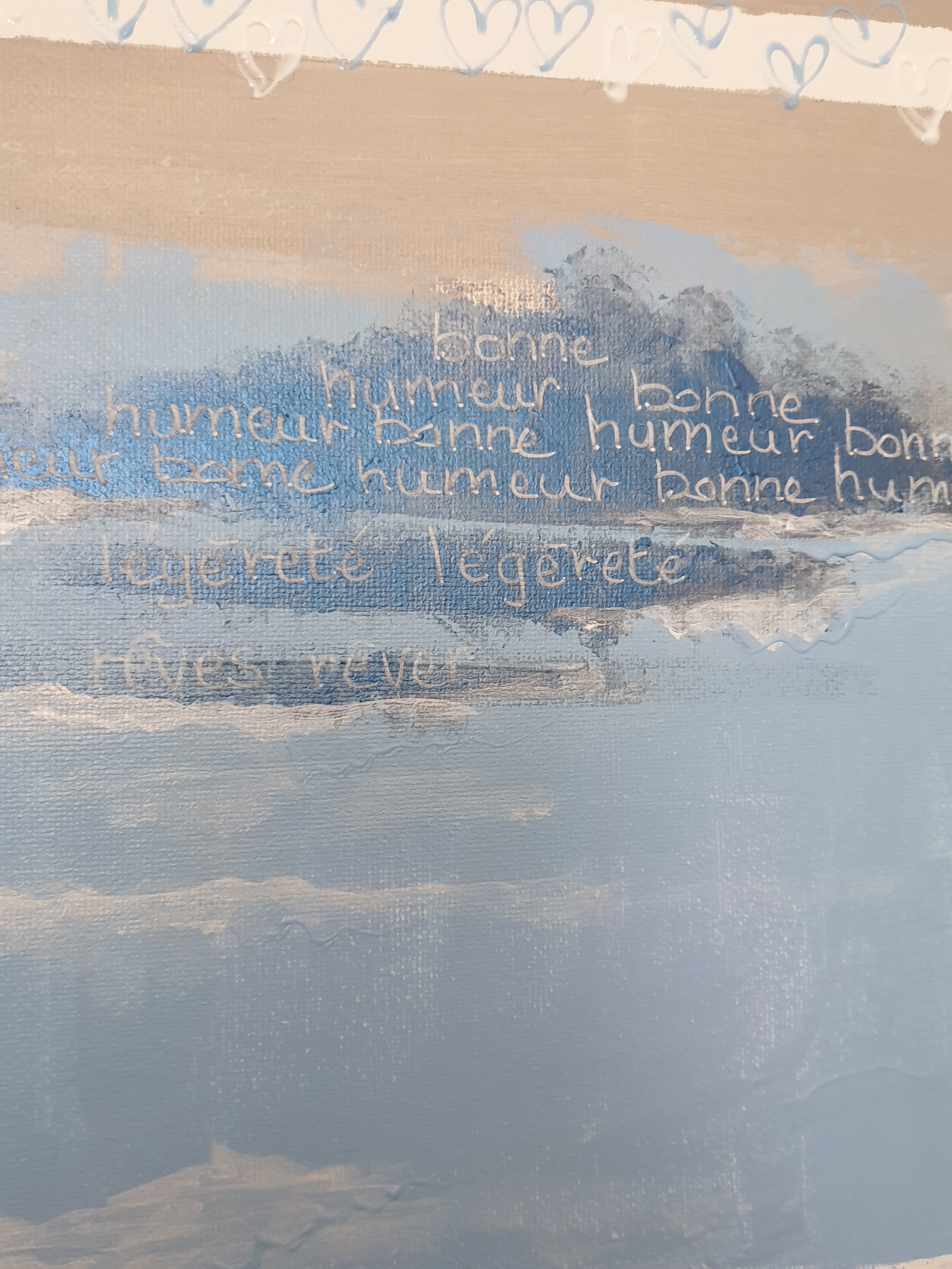 Jusqu’à présent, j’avais réalisé des tableaux avec juste quelques mots par ci par là et sur des petits formats.