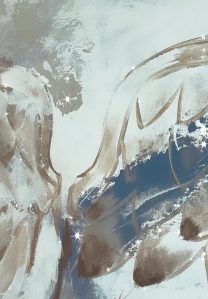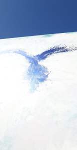 J’étale le blanc partout, je laisse sécher. Puis je commence à passer un peu de bleu (sans doute influencée par la couleur du ciel de Provence dont l’insolente luminosité m’inspire) et voilà qu’une silhouette d’oiseau sort !