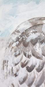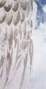 Et je redessine les ailes en les allégeant au maximum. Je veux qu’elles puissent surgir du fond de la toile et que les contours ne soient pas définis, comme si elles étaient mouvantes, frêles, suggérées.