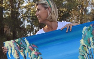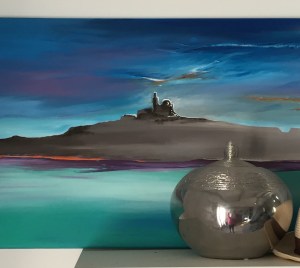 Je me suis amusée à réunir mes deux passions : la peinture (la mienne tant qu’à faire) et les bijoux que j’ai confectionnés (les miens également).