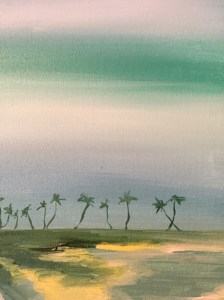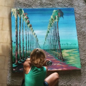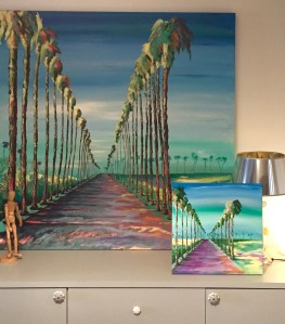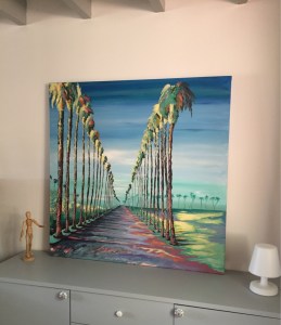 C’est comme ça qu’à la demande mon amie Magali, j’accepte de réaliser la copie d’un tableau que j’ai déjà fait et qui s’intitule « Allée de palmiers ».