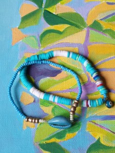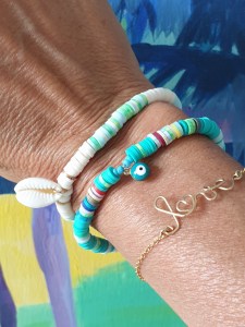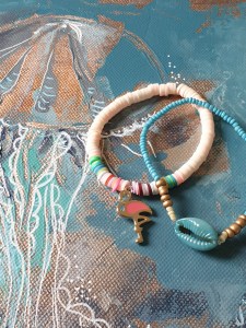 C’est à se demander si je ne devrais pas intégrer mes colliers et mes bracelets à mes toiles… non, je plaisante, je préfère porter mes bijoux ou les voir portés !